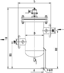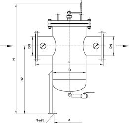 注:筒体直径≥500mm时, 过滤器封头采用椭圆形封头形式。
