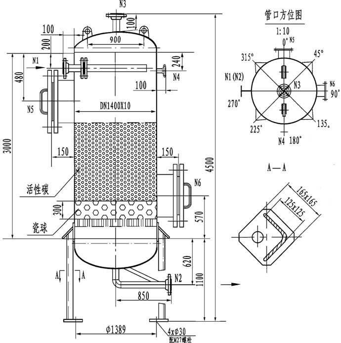 产品展示 更多产品分类 过滤设备 静态混合设备 加热设备系列 动态混合设备 消声器 纸张专用设备 管用专用小型设备 油罐附件系列 煤气管道排水器 活性碳过滤器 一、产品特性 活性碳过滤器内装8-10目颗粒状活性碳,一般石化行业中用于双脱装置,水处理车间等。活性碳有煤质碳、果壳碳或椰壳碳。它主要去除流体中的有机物,胶体化合物和硫化物,余氯等杂质,属于吸附过滤方式。 活性碳吸附饱和后无法通过反冲洗再生,必须及时更换,我公司在石油、化工、水处理等行业均有比较成熟的实例。各种技术参数不尽相同,请将处理量、工作压力、粘度、密度、温度等参数、传真或致电本公司。 我公司将为你提供最合适的设备形式。 其主要典型结构如下 上页下页