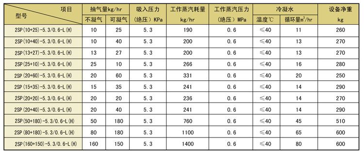 产品展示 更多产品分类 过滤设备 静态混合设备 加热设备系列 动态混合设备 消声器 纸张专用设备 管用专用小型设备 油罐附件系列 煤气管道排水器 2SP系列二级蒸汽喷射真空泵 一、技术参数 二、订货说明 1、许可工作蒸汽最低压力为 0.3MPa( 绝压),请用户在订货时说明,以便我们根据用户的实际工作蒸汽压力配制喷嘴。 2、图示冷凝器为混合式,我们可以根据用户要求配制列管式冷凝器。 三、应用场合 1、化合物的浓缩蒸发 2、无机盐、碱液的真空浓缩 3、油脂脱色、脱水 4、苯酐、顺酐、偏酐 上页下页