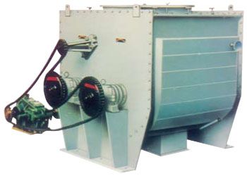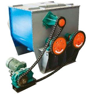本机由电机通过减速机、链轮带动二根平行的主轴以一定的转速作等速反向转动。以一定角度安装在主轴上的桨叶将物料抛洒到整个容器空间,使物料处于瞬间失重状态,广泛交错对流、扩散,从而达到均匀混合。对比重和粒径及形状差异悬殊的物料混合时不会产生偏析,是一种迅速高效的粉体混合设备。本机可按用户要求,增加夹套及分散棒,也可提供气动出料及喷液装置。接触物料部分材质为碳钢或不锈钢。