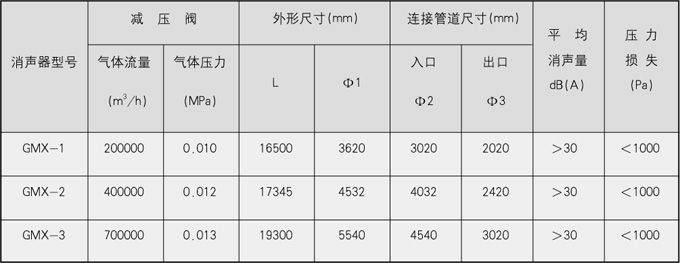产品展示 更多产品分类 过滤设备 静态混合设备 加热设备系列 动态混合设备 消声器 纸张专用设备 管用专用小型设备 油罐附件系列 煤气管道排水器 GMX型高炉煤气减压阀消声器 一、结构形式 高炉煤气减压阀消声器系阻性片式消声装置,内部采用煤尘清洗措施,吸声结构可灵活更换,整个系列可与不同规格的煤气减压阀组配套。二、适用范围 主要用于控制高炉煤气回收系统中减压阀组所带来的气流噪声。 气体流量:200000~700000m3/h;适用压力:0.01~0.013MPa。三、规格、性能、外形尺寸GMX型高炉煤气减压阀消声器 上页下页