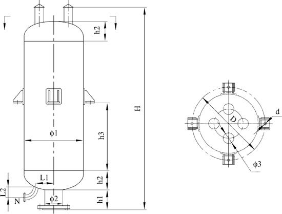 3.若放空阀前压力P>2.5MPa,宜在消声器前配管上安放一个φ=0.5D(配管直径)节流孔板。