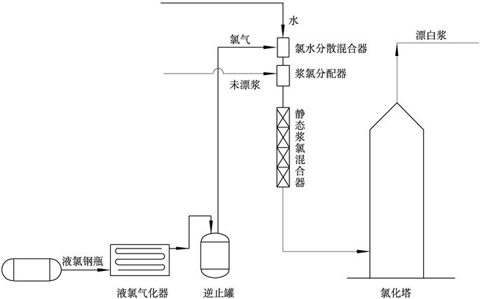 在纸浆多段漂白系统的氯化段(C段),氯气与纸浆能否充分、快速、均匀的混合是提高纸浆白度、保证产品质量的关键。混合不好,纸浆与氯气不能均匀接触,必然产生氯化不均的现象。为了提高氯化效果,必须安装浆氯混合器。
