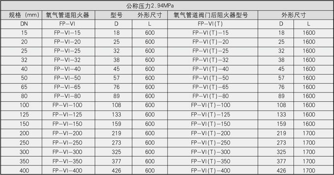 6、FP-VI(T)型氧气管道阻火器氧气管道阻火器和氧气管道阀门后阻火器采用特种铜合金和不锈钢、碳钢焊接而成。它在氧气管道中具有阻火特点,可有效地切断火源,杜绝管道中燃爆事故的发生,在管道输氧过程中,愈来愈显示它的必要性与阻燃的优越性。