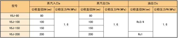 乏气分油器能有效地除掉乏气中夹带的润滑油滴,对保护环境和整个装置正常运行都具有十分重要的意义。我公司生产的VSJ型乏气分油器主要技术参数如下: