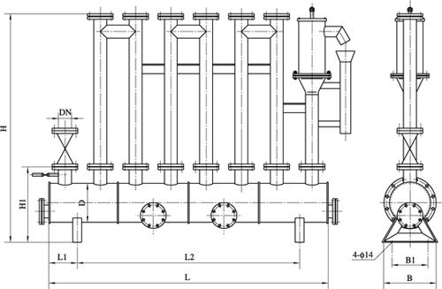 图一、水封高度≤2000mmH2O防泄漏型卧式煤气排水器外形图
