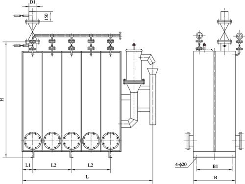图六、水封高度>7000mmH2O防泄漏型方形煤气排水器外形图