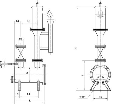 图五、水封高度>7000mmH2O防泄漏型卧式圆形煤气排水器外形图